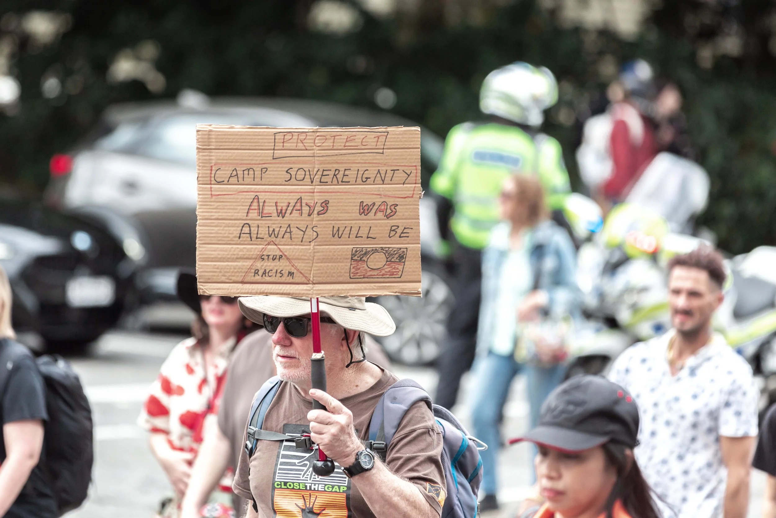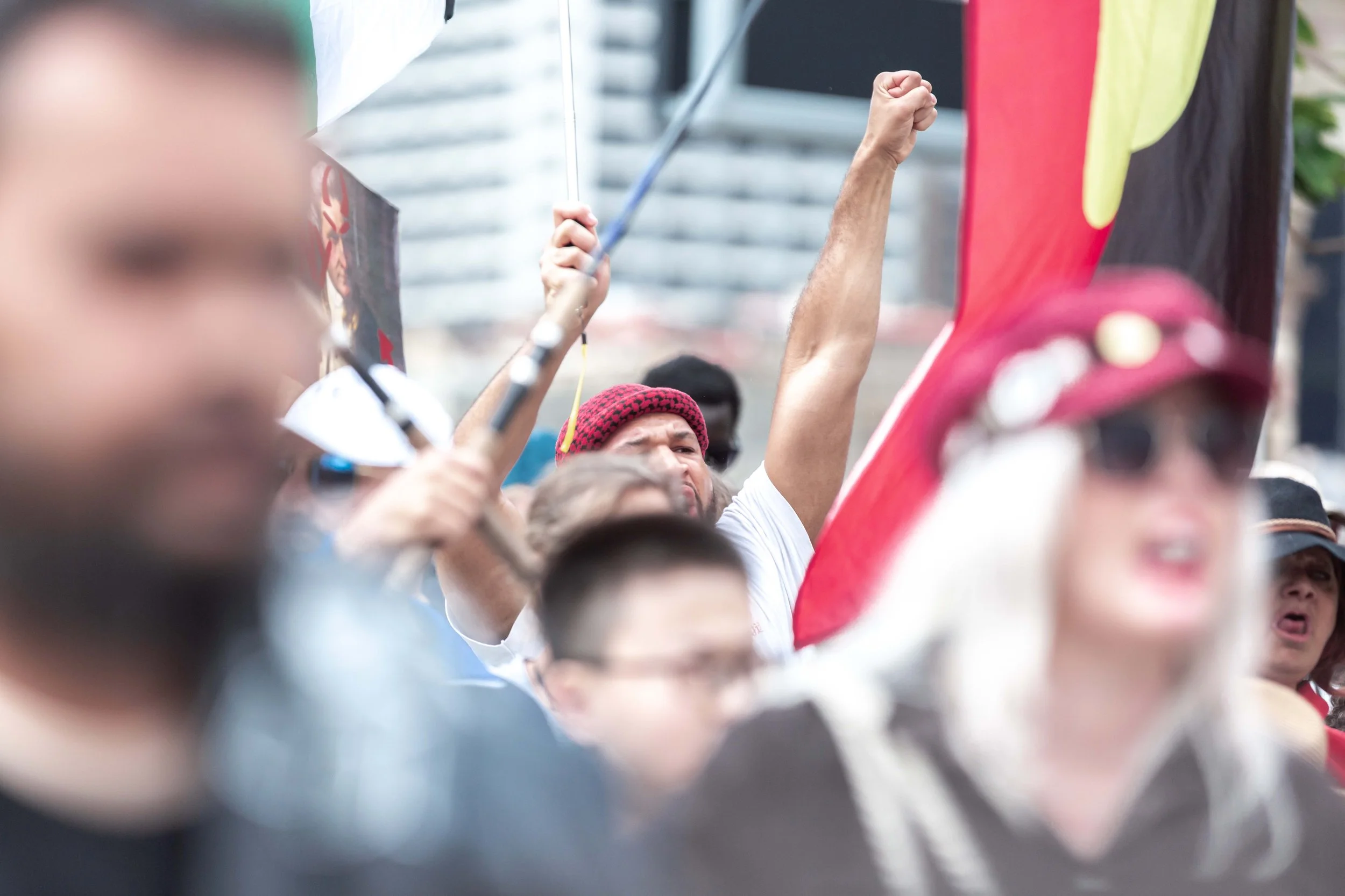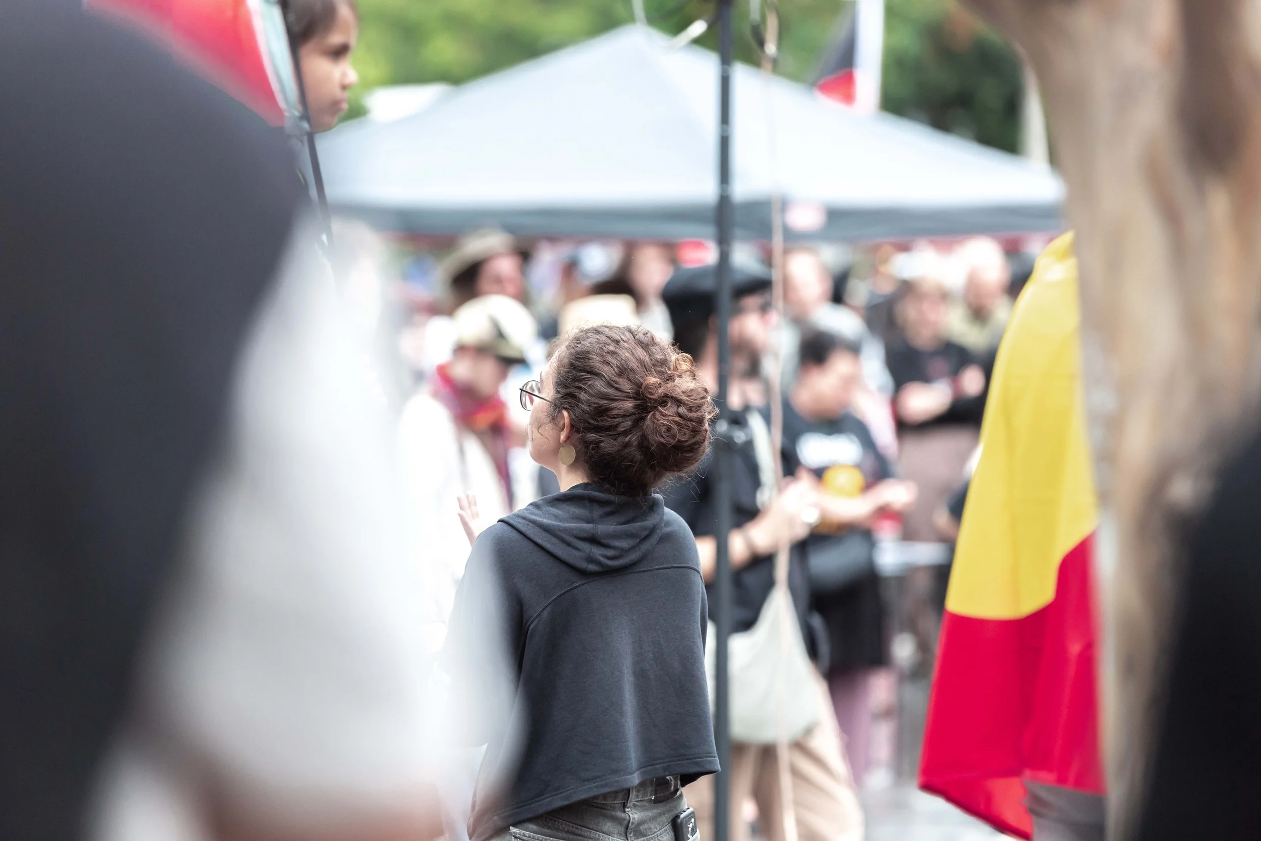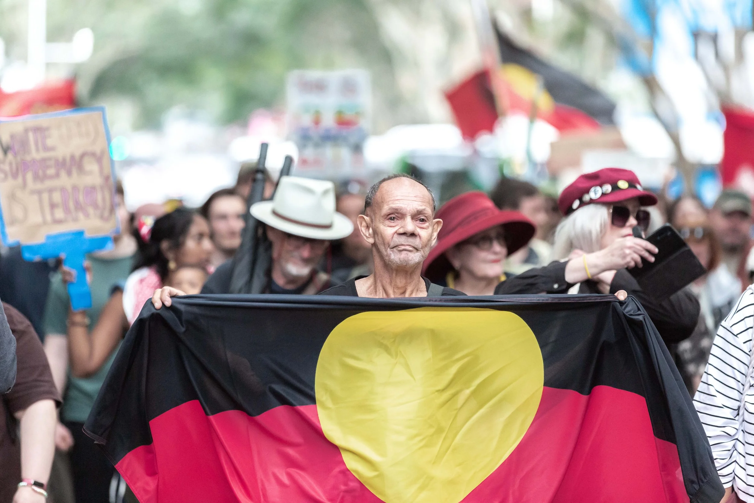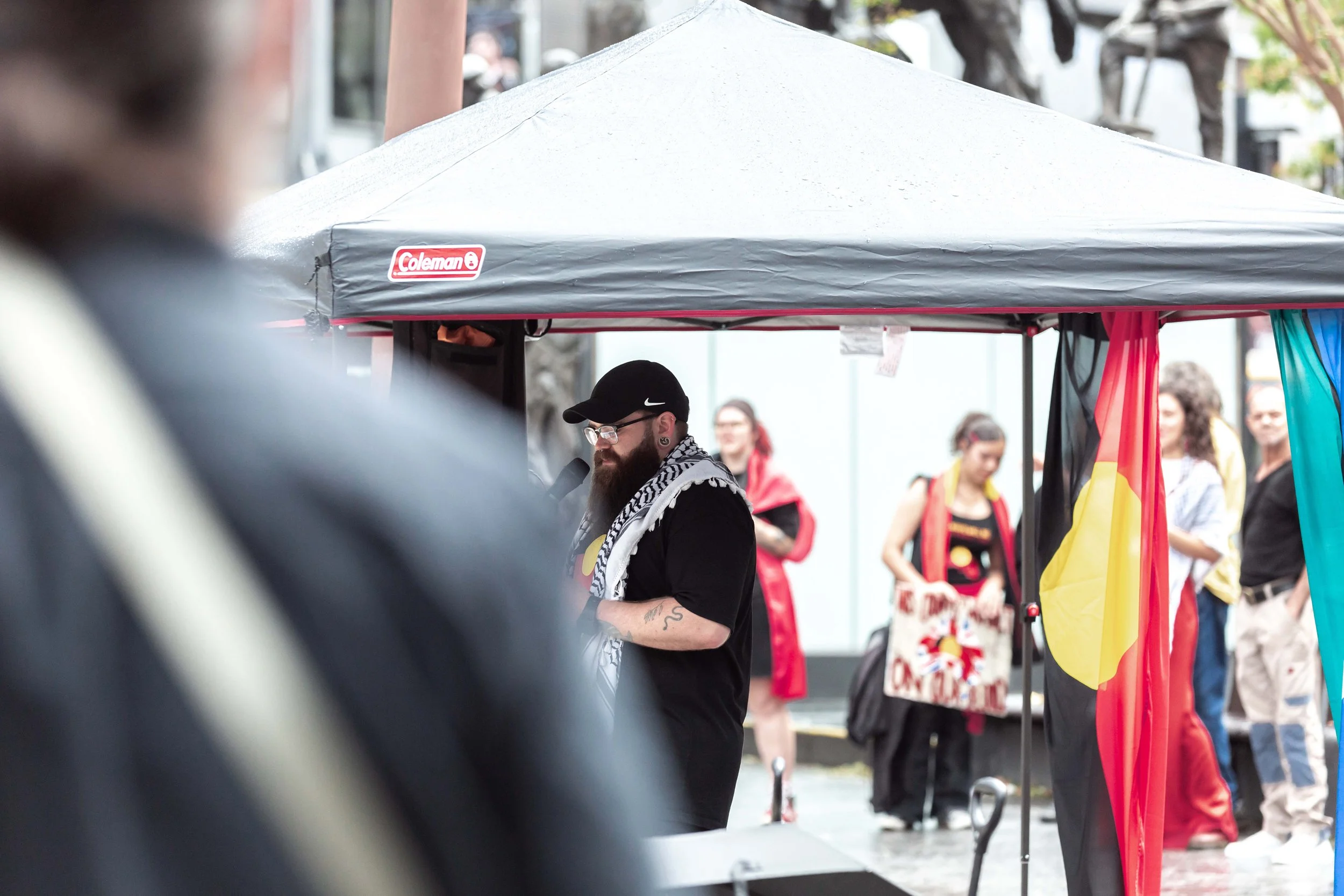 We worked together to cover the Magandjin Sovereignty Never Ceded Rally Against Racism on the 14th of September 2025. My contribution was visual storytelling, as can be seen below.