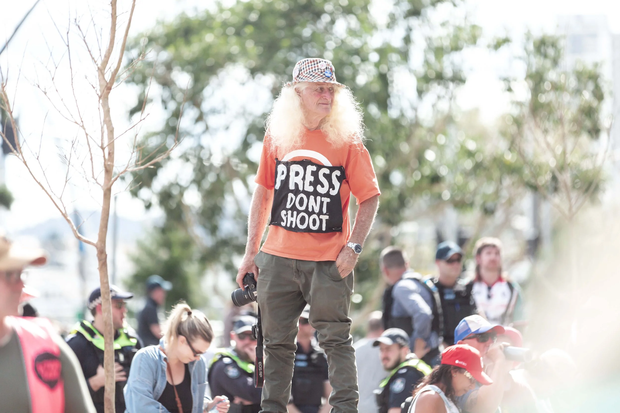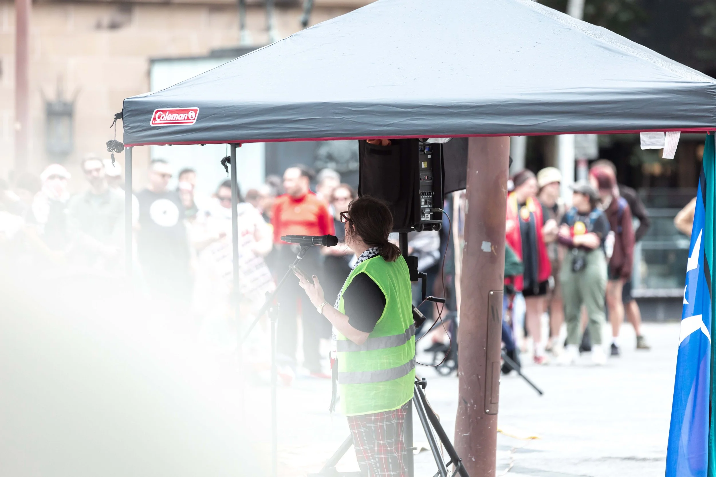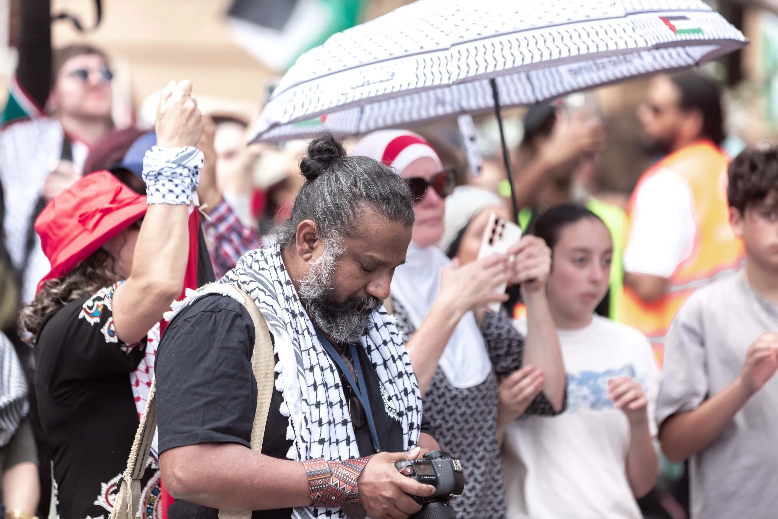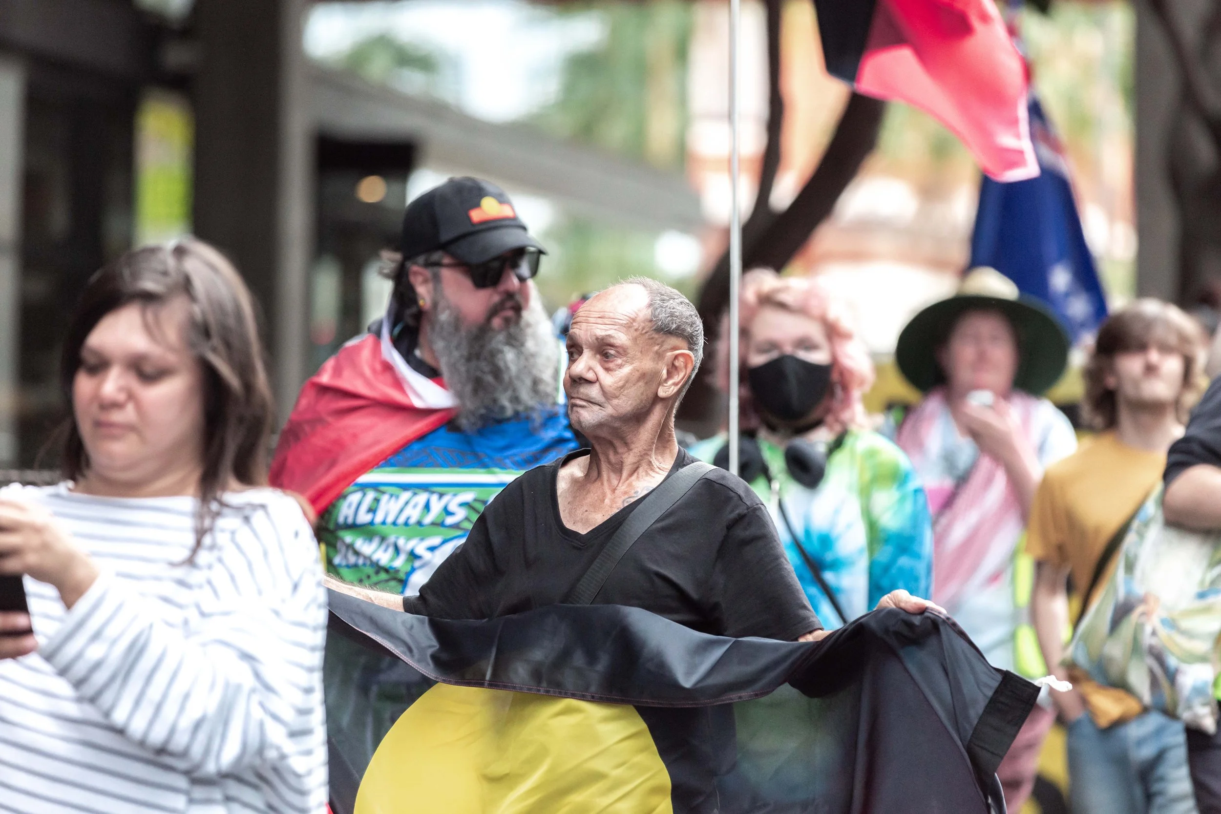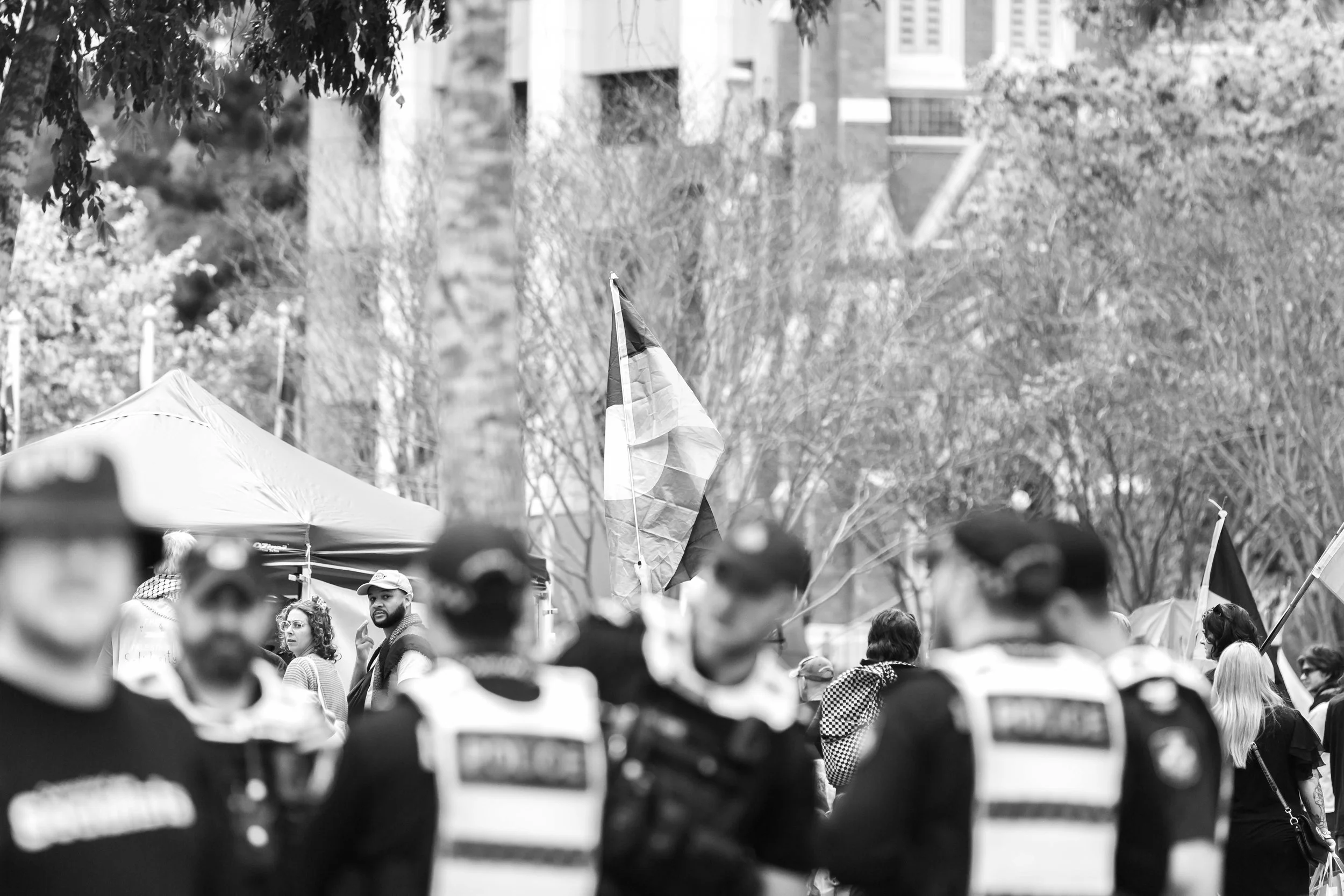 We worked together to cover the Magandjin Sovereignty Never Ceded Rally Against Racism on the 14th of September 2025. My contribution was visual storytelling, as can be seen below.