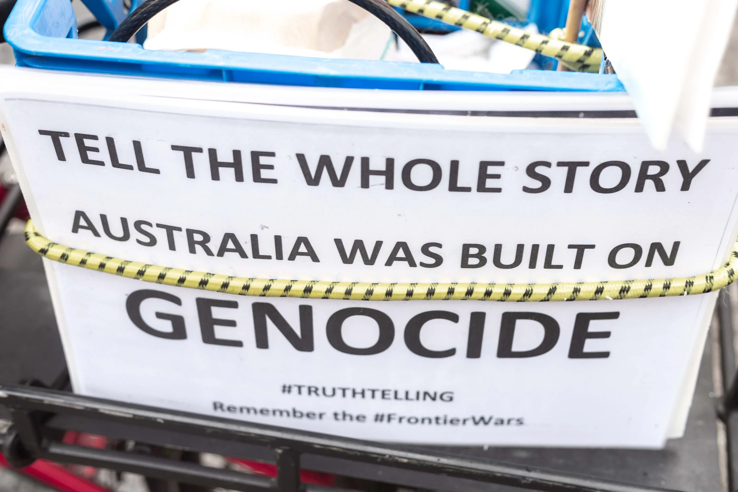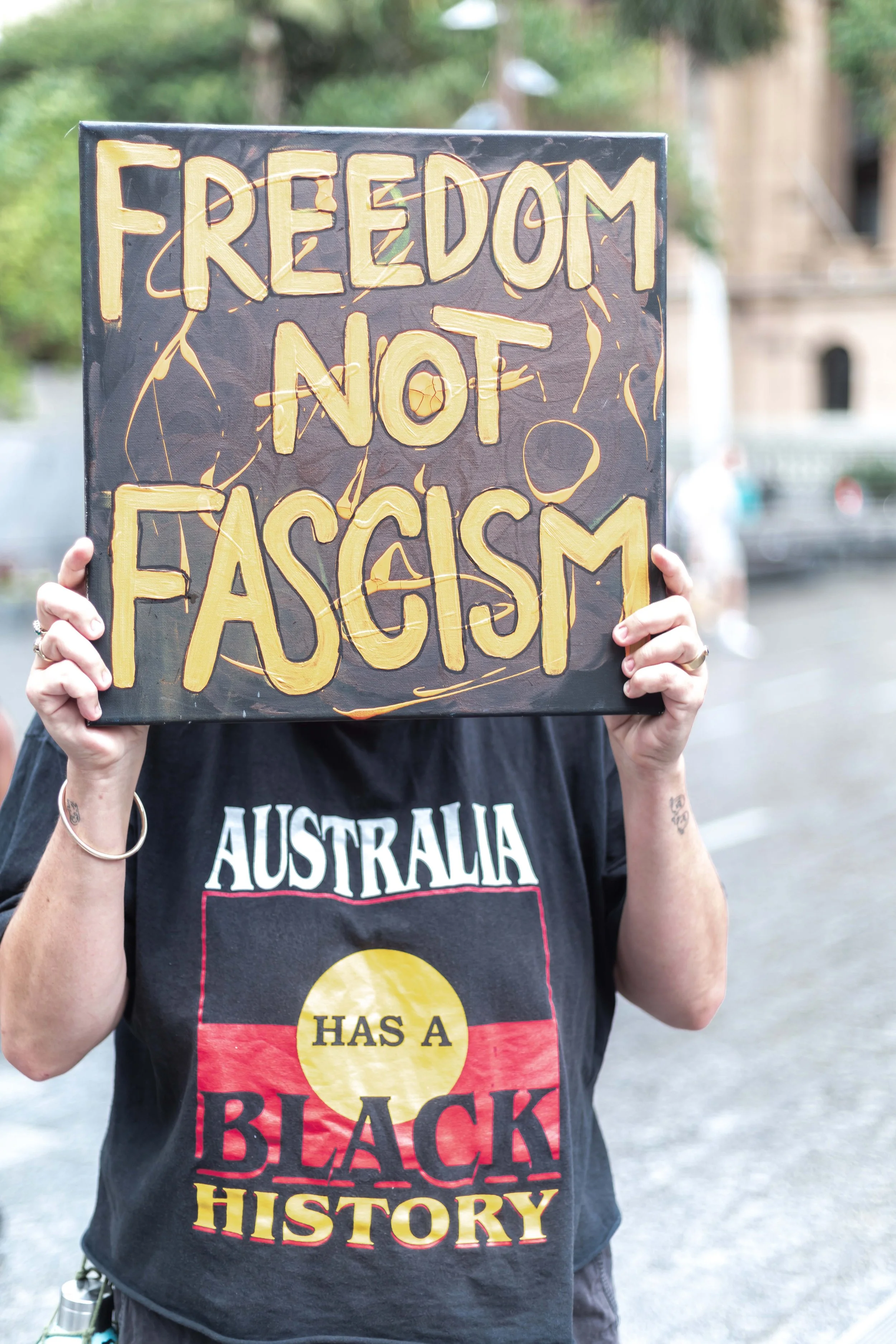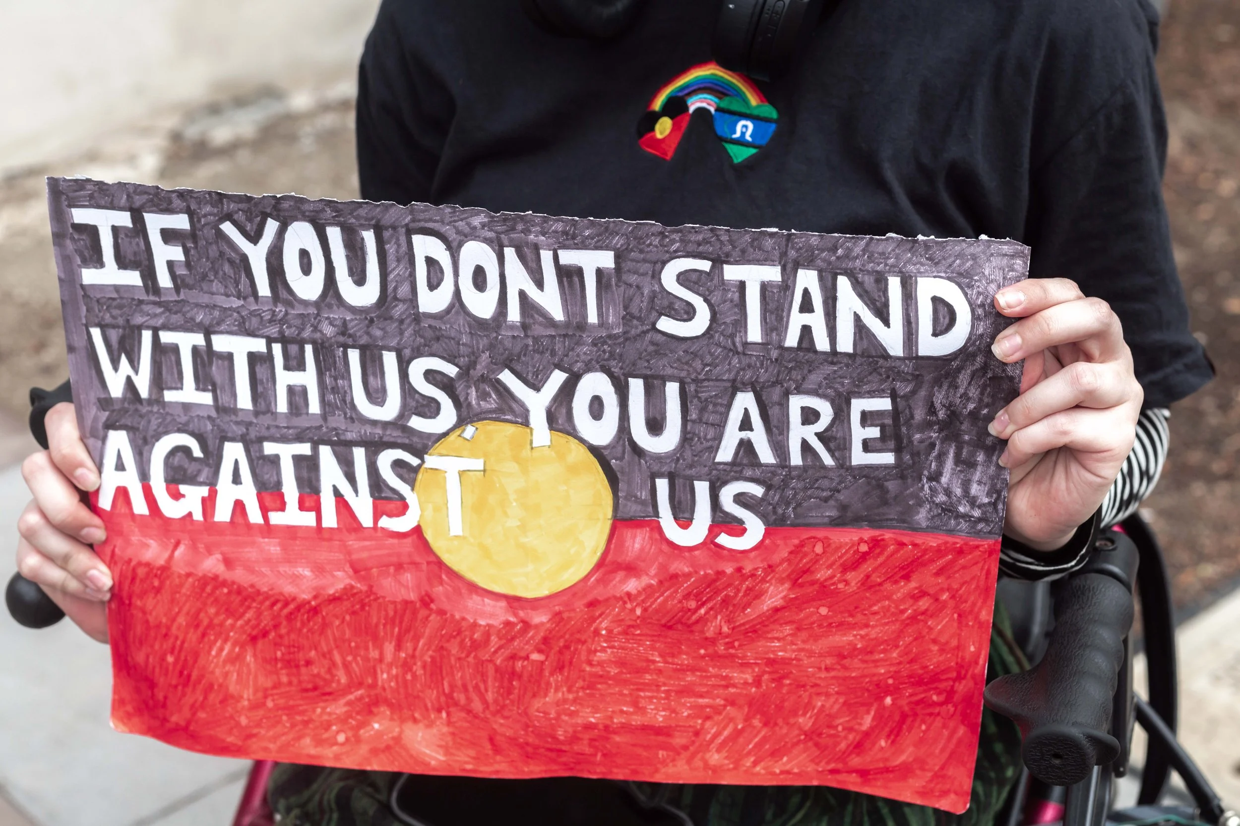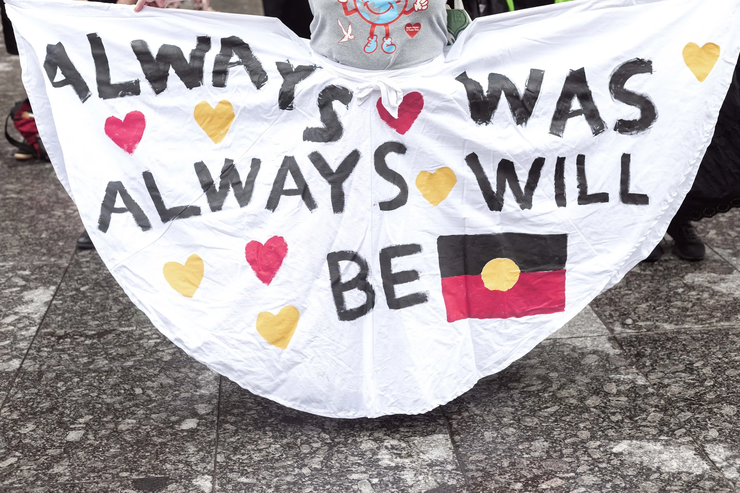 It always was and always will be Aboriginal land. So-called Australia was built on genocide. End all oppression. Use your white privilege to end white privilege. Solidarity. NEVER AGAIN FOR ALL.